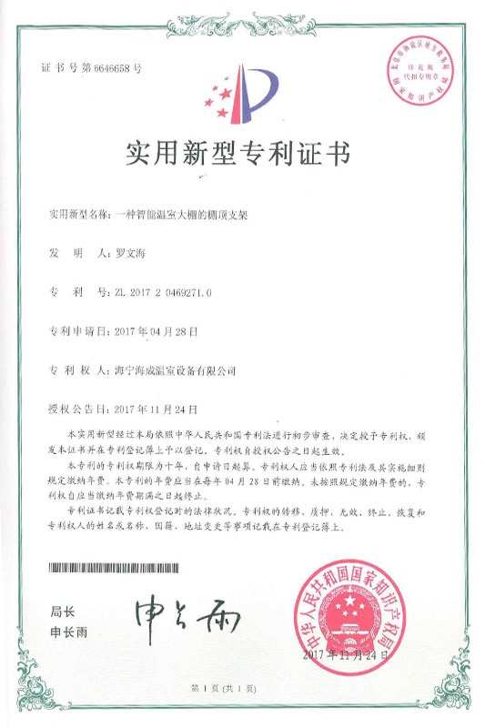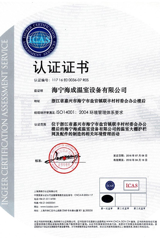 海寧海成溫室設(shè)備有公司位于浙江省海寧市鹽官鎮(zhèn),是一家集設(shè)計、生產(chǎn)、銷售、安裝為一體的農(nóng)業(yè)科技性公司。公司專業(yè)生產(chǎn)、制作溫室大棚已有數(shù)十年。本公司專注于經(jīng)營鋼管大棚、連棟大棚、鋁合金玻璃溫室及配套系統(tǒng),長期以來,公司秉承“以誠為本,以信立業(yè)”的宗旨為廣大客戶服務(wù),產(chǎn)品銷售到全國各地及海外市場,并得到了許多客戶的好評。公司已取得ISO9001質(zhì)量管理體系認(rèn)證證書,具有專業(yè)的質(zhì)量管理化制度,為了讓我們的客戶擁有輕松的項(xiàng)目實(shí)施體驗(yàn),我們還設(shè)置了專門的項(xiàng)目管理中心,采用專職的項(xiàng)目經(jīng)理負(fù)責(zé)制,為客戶全程跟進(jìn)項(xiàng)目。公司管理一直追求制度化、標(biāo)準(zhǔn)化,全體員工牢固樹立質(zhì)量意識,恪守各項(xiàng)規(guī)章制度,嚴(yán)格按照行業(yè)及國家有關(guān)規(guī)定執(zhí)行。
