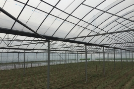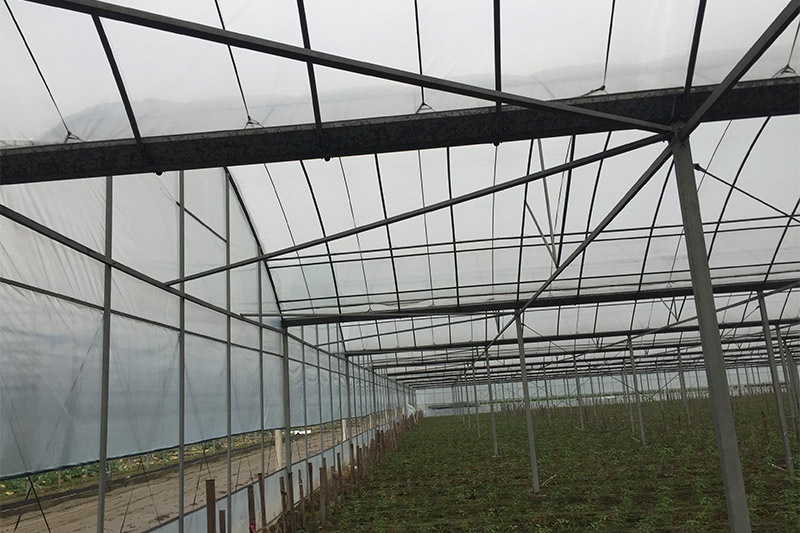 該產(chǎn)品由基礎、框架立柱,頂部拱管三大部分組成。點式獨立基礎,使大棚根基牢固;立柱采用熱鍍鋅方管,大大增強抗風抗雪強度;頂部由熱浸鍍鋅鋼管排列成平滑圓弧形,牢固兼美觀。同時天溝采用2mm厚熱鍍鋅板冷彎成型,容量大,排水及時;頂部天溝處和大棚四周均設置搖膜通風系統(tǒng),是大棚內(nèi)部氣流通暢。此產(chǎn)品可根據(jù)需要實現(xiàn)相關配套設施,以便達到更理想的效果,如外遮陽系統(tǒng)、內(nèi)遮陽保溫系統(tǒng)、降溫系統(tǒng)、加溫系統(tǒng)、噴滴灌系統(tǒng)等。