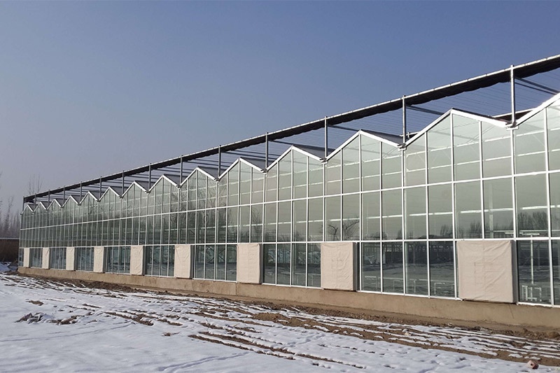 文洛式玻璃溫室為一跨三尖頂、雙坡面小屋頂桁架結(jié)構(gòu)、多雨槽、具有美觀、吊掛能力強(qiáng)、透光性好、空間大、機(jī)械性能強(qiáng)等優(yōu)點(diǎn)。