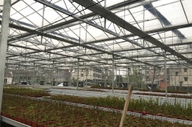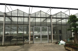文洛式玻璃溫室為一跨三尖頂、雙坡面小屋頂桁架結(jié)構(gòu)、多雨槽、具有美觀、吊掛能力強(qiáng)、透光性好、空間大、機(jī)械性能強(qiáng)等優(yōu)點(diǎn)。