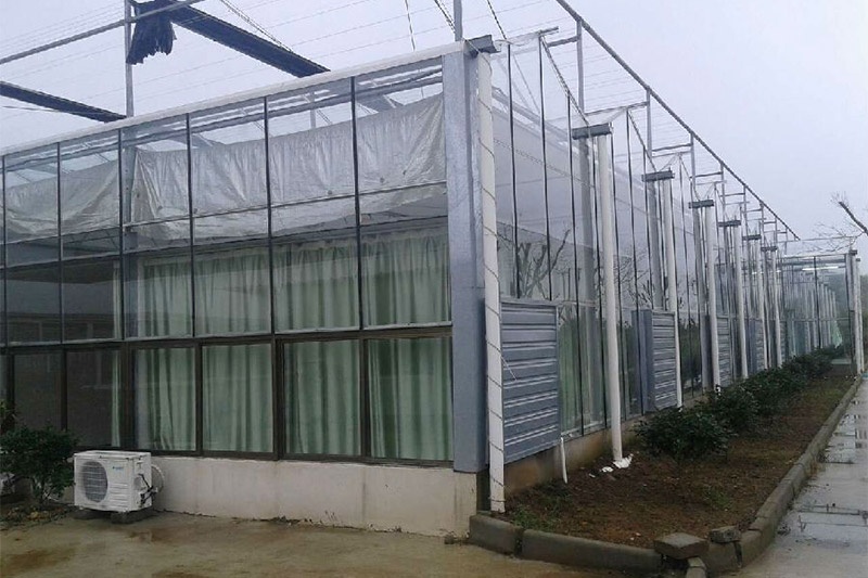 文洛式玻璃溫室為一跨三尖頂、雙坡面小屋頂桁架結(jié)構(gòu)、多雨槽、具有美觀、吊掛能力強(qiáng)、透光性好、空間大、機(jī)械性能強(qiáng)等優(yōu)點(diǎn)。